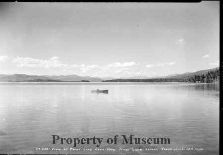 Across bottom: 37—648 View of Priest Lake from Paul Jones Beach — Coolin — Idaho — Photo by Leo's Studio
