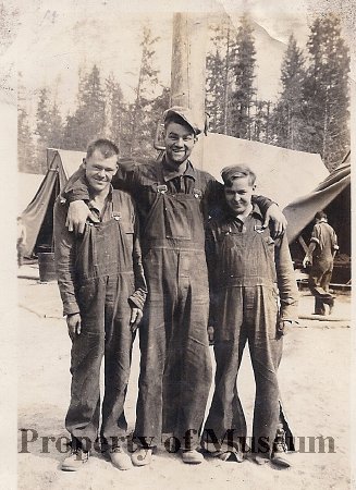 Three men at the  Four Corners Camp F—164 CCC Co. 533