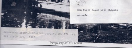 Shipman's Animals (on Sam Byars' Barge) Leaving Coolin for the San Diego Zoo 1925