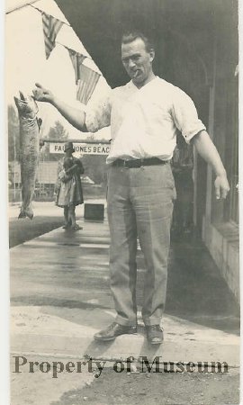 Additional information given by Charlotte Jones: "Leonard was not an outdoors man so he probably didn't catch this fish. His store was his life—long passion."