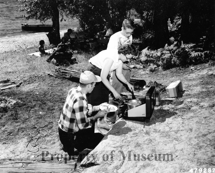 View of Group Picnicking and Cooking on a Gas Stove 1955