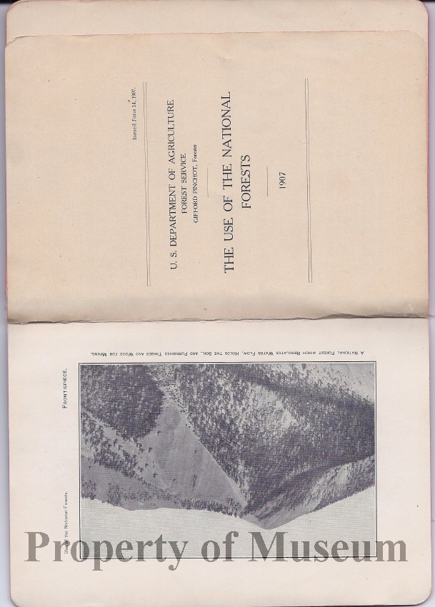 USFS book titled "The Use of the National Forests", 42 pages, maroon, hard bound.  An early overview of the purpose of the National Forests.