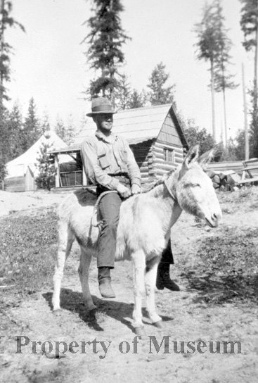 District Ranger on Donkey at Beaver Creek R.S. (?)
