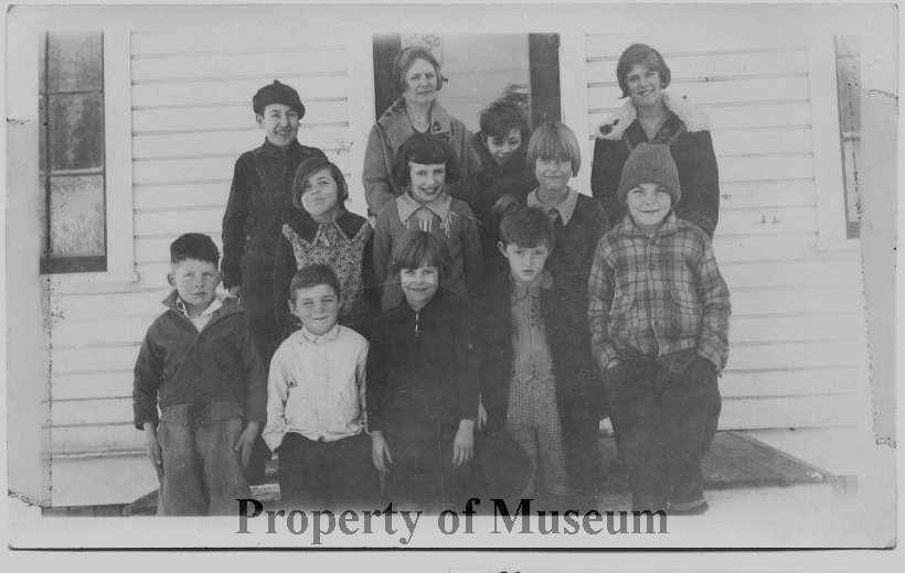 Coolin school class circa 1928.  Back row - far left with black hat Jimmy Hodges, ?, Mr.s Egbert, ?, Marjorie (Paul ) Roberts, Nancy Egbert Nelson.  Middle of front row next to boy in white is June (Paul) Pauley.  Also in picture may be Cameron Ward and Barry Shipman and Betty (Paul) Galbreaith according to Charlotte Jones.