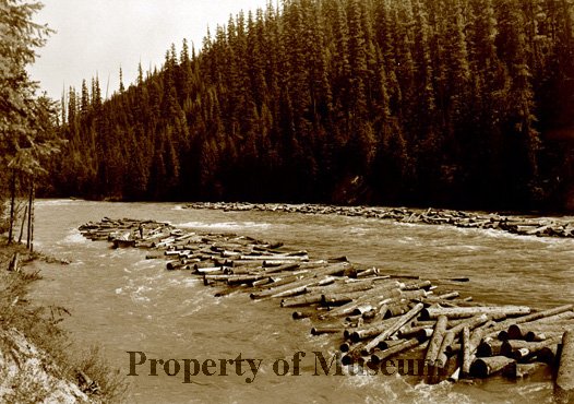 Logs Jam with a boat on Priest River