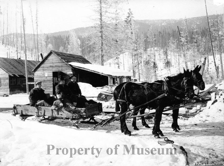 Forest Officers on Horse Drawn Sleigh Visiting Beardmore Timber Sale Logging Camp in Priest River