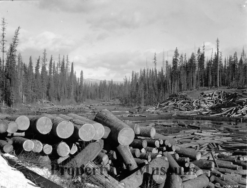 Black and white Image from disc, there is no photograph in the file. Caption reads: "Log drive on Priest River of white pine and cedar. FS#208099 4/19/1926 Swan, K.D."